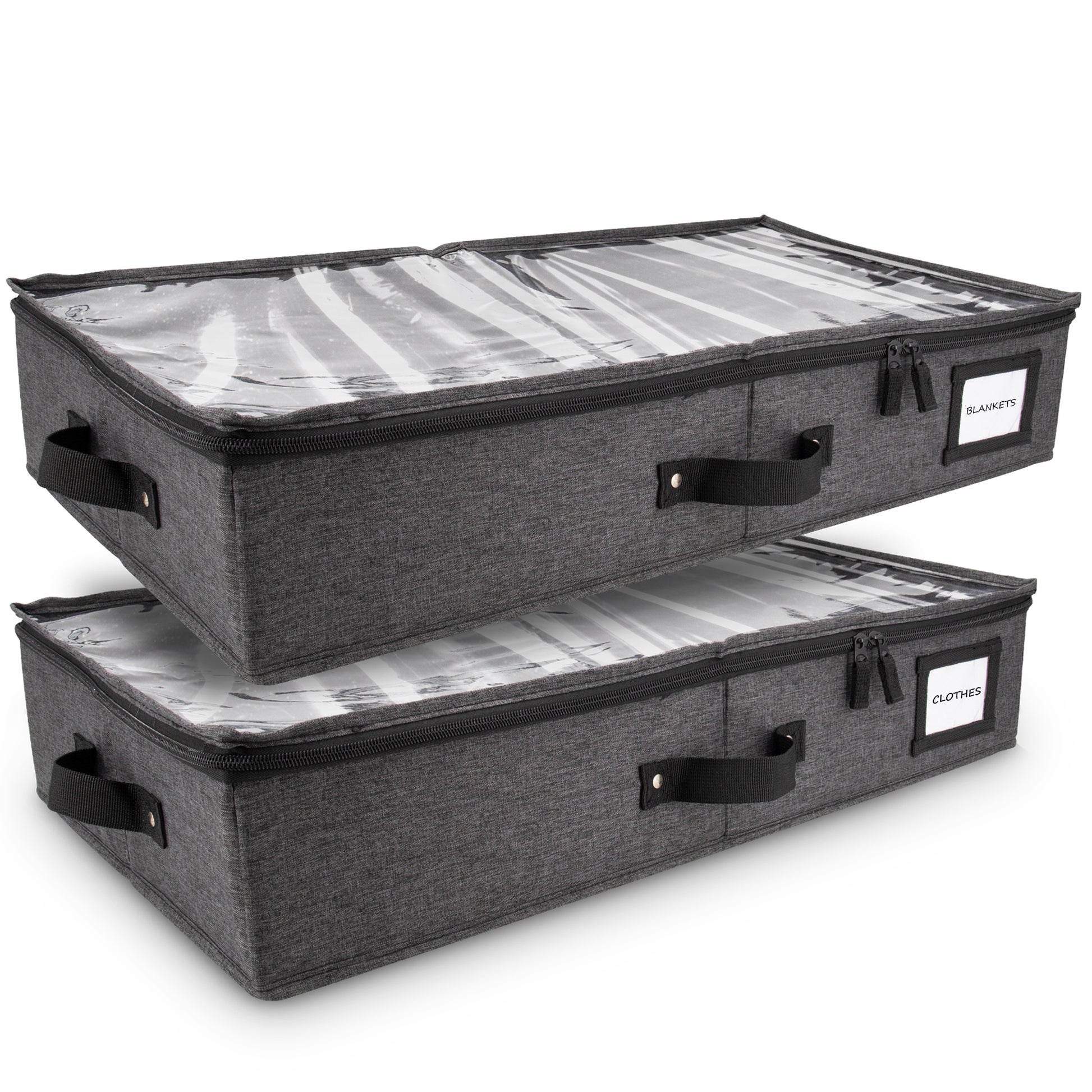 ✨IDENTIFY CONTENTS IMMEDIATELY✨ Homelux Theory's under bed clothes storage not only comes with durable clear transparent PVC plastic lid, it also has 2 large label pockets, allowing you to easily identify the contents of each container without having to open them. The most convenient and time-saving solution for organizing your belongings. No more guessing and trying to figure out where you store your things.