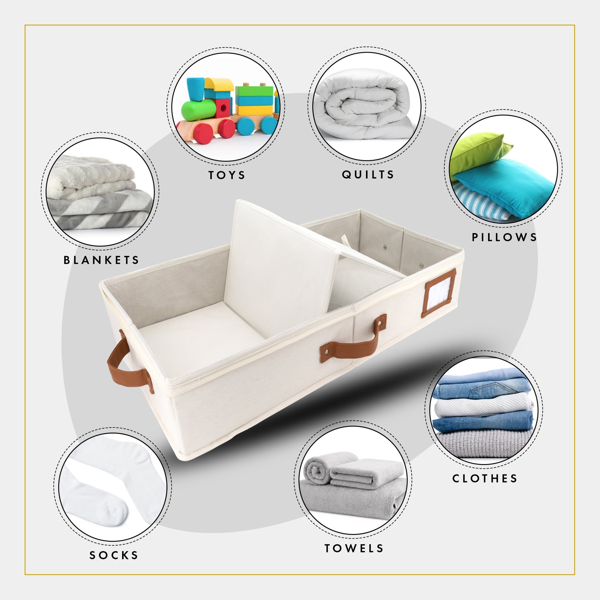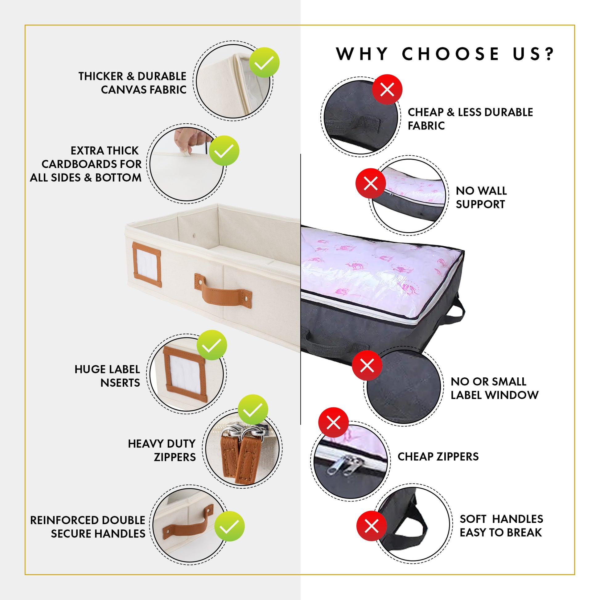 ⭐SUPERIOR CANVAS & MATERIAL⭐ - Made from premium quality canvas fabric that's durable, sturdy, and carefully designed to hold large quantities of clothes, blankets, etc. These containers are designed to fit perfectly under your bed, maximizing the space in your room.